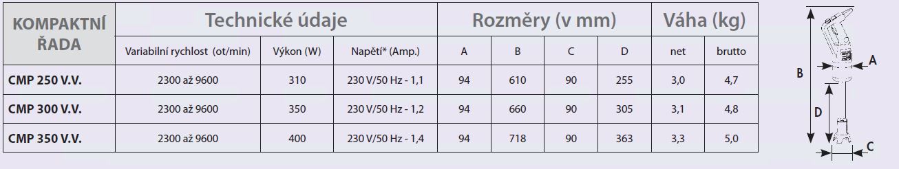 rychlost 2300 - 9600 ot./min.