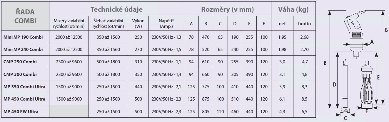 Ruční ponorný mixér a šlehač Mini MP 240 Combi od francouzského výrobce ROBOT COUPE.